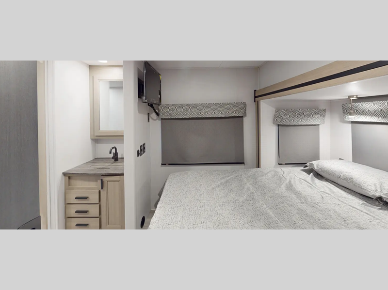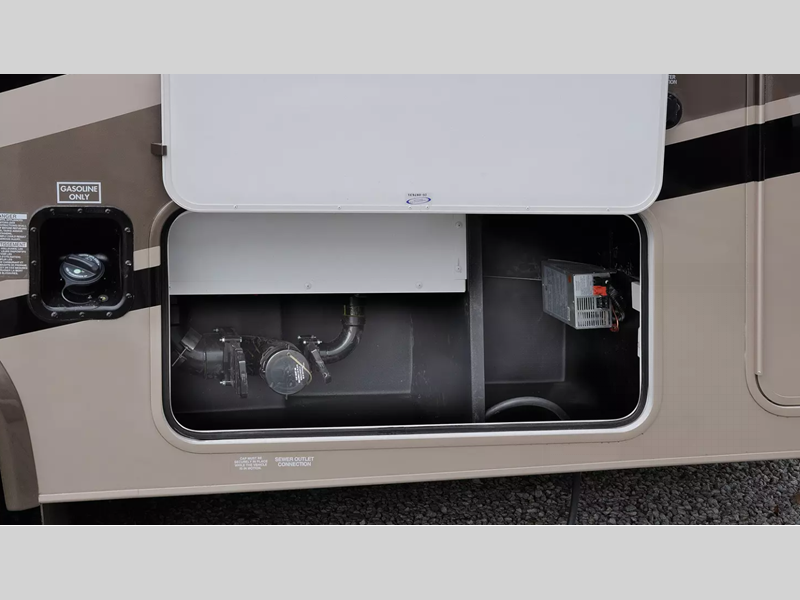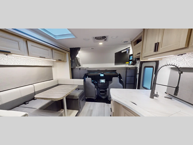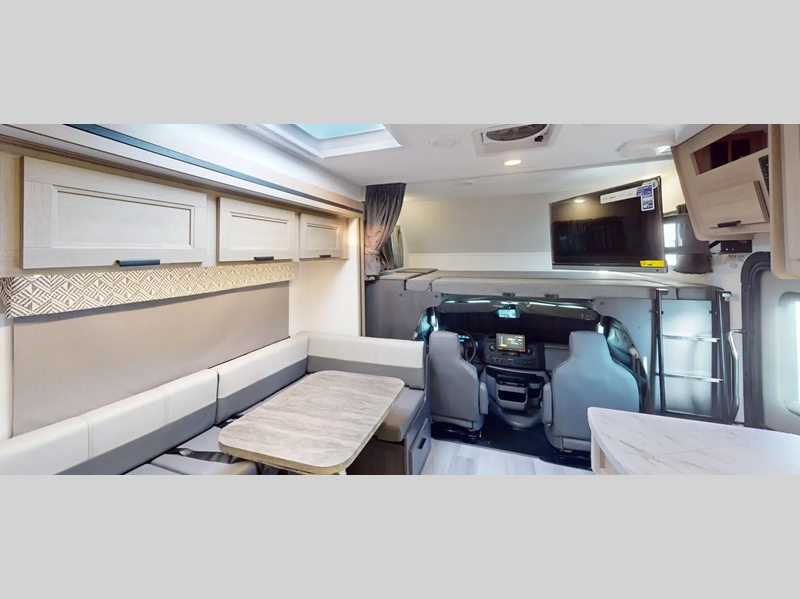 Each model includes an EZ Ryde upgraded suspension system for a smooth drive each time, plus a 10" touch screen and backup camera/side view cameras with a 3-way monitor for easy maneuvering at the campground. The 2" aluminum framed laminated sidewalls and SuperLite composite substrate provide a strong motorhome made to last, and the block foam insulation means you can camp year around. Head inside to find black out roller shades, soft touch self-closing drawer guides, an oxygen-infused shower head, plus a 12V USB charging station to keep your electronics charged and ready to go.