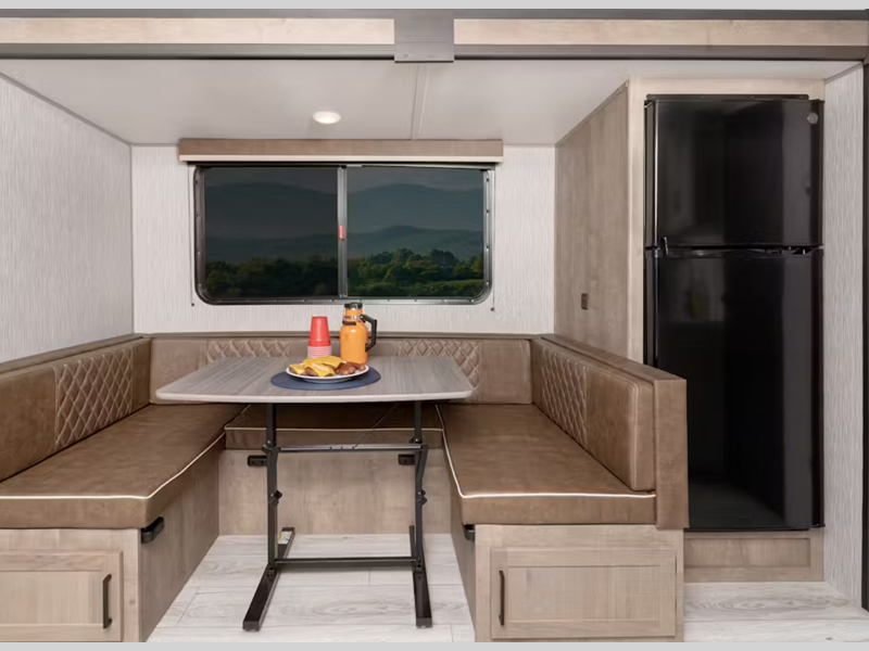 - 10.25-gallon storage bins under dinette bases