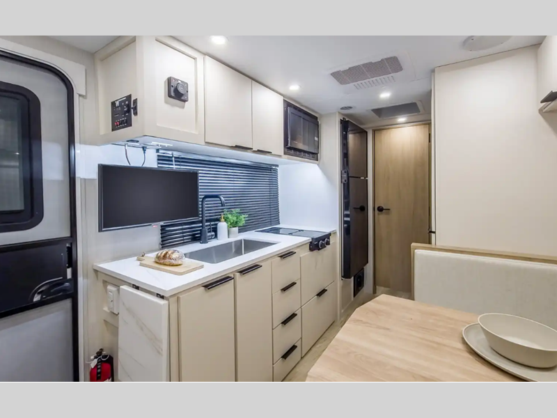 Sleeps 3 Length 22 ft 4 in Ext Width 7 ft Ext Height 10 ft 4 in Int Height 6 ft 4 in Interior Color Modern Luxe Exterior Color White Hitch Weight 388 lbs GVWR 5500 lbs Dry Weight 3942 lbs Fresh Water Capacity 31 gals Grey Water Capacity 25 gals Black Water Capacity 25 gals Tire Size 235/75R15C Furnace BTU 18000 btu Available Beds Queen Refrigerator Type 12V Refrigerator Size 10 cu ft Convection Cooking Yes Cooktop Burners 2 Shower Size 30" x 36" Number of Awnings 1 Axle Weight 3000 lbs LP Tank Capacity 20 lbs Water Heater Type Tankless AC BTU 13500 btu TV Info LR Smart TV Awning Info 15' Power with LED Lighting Axle Count 2 Number of LP Tanks 2 Shower Type Standard Electrical Service 30 amp Solar Wattage 200 watts Similar Floorplans